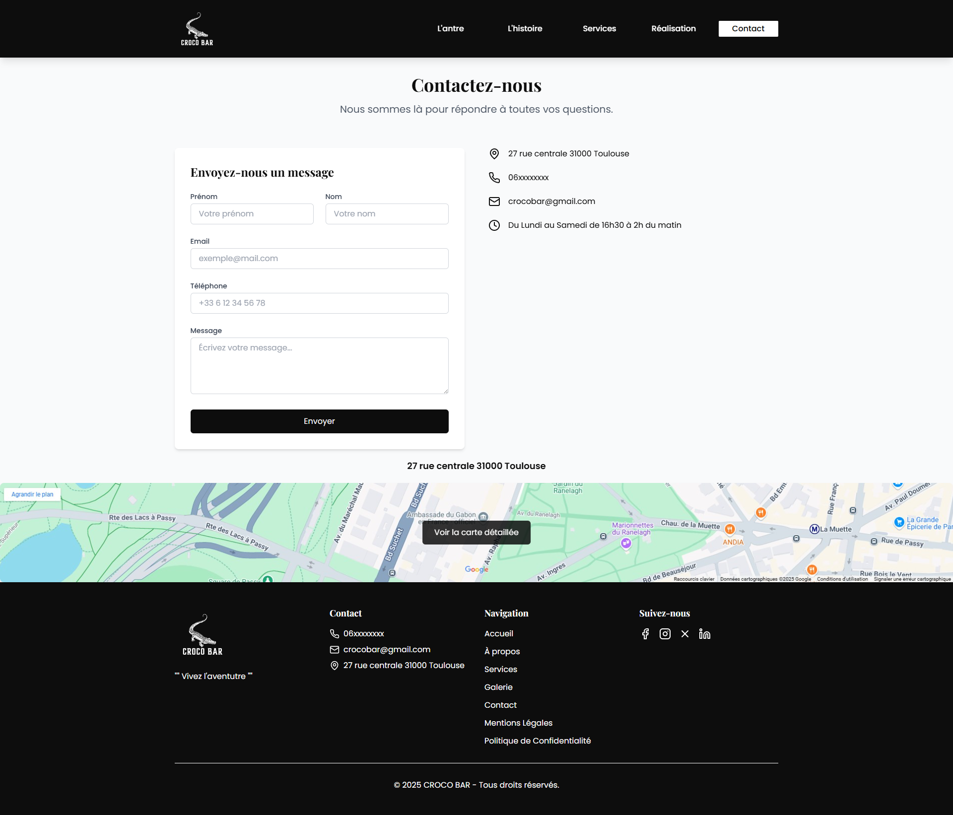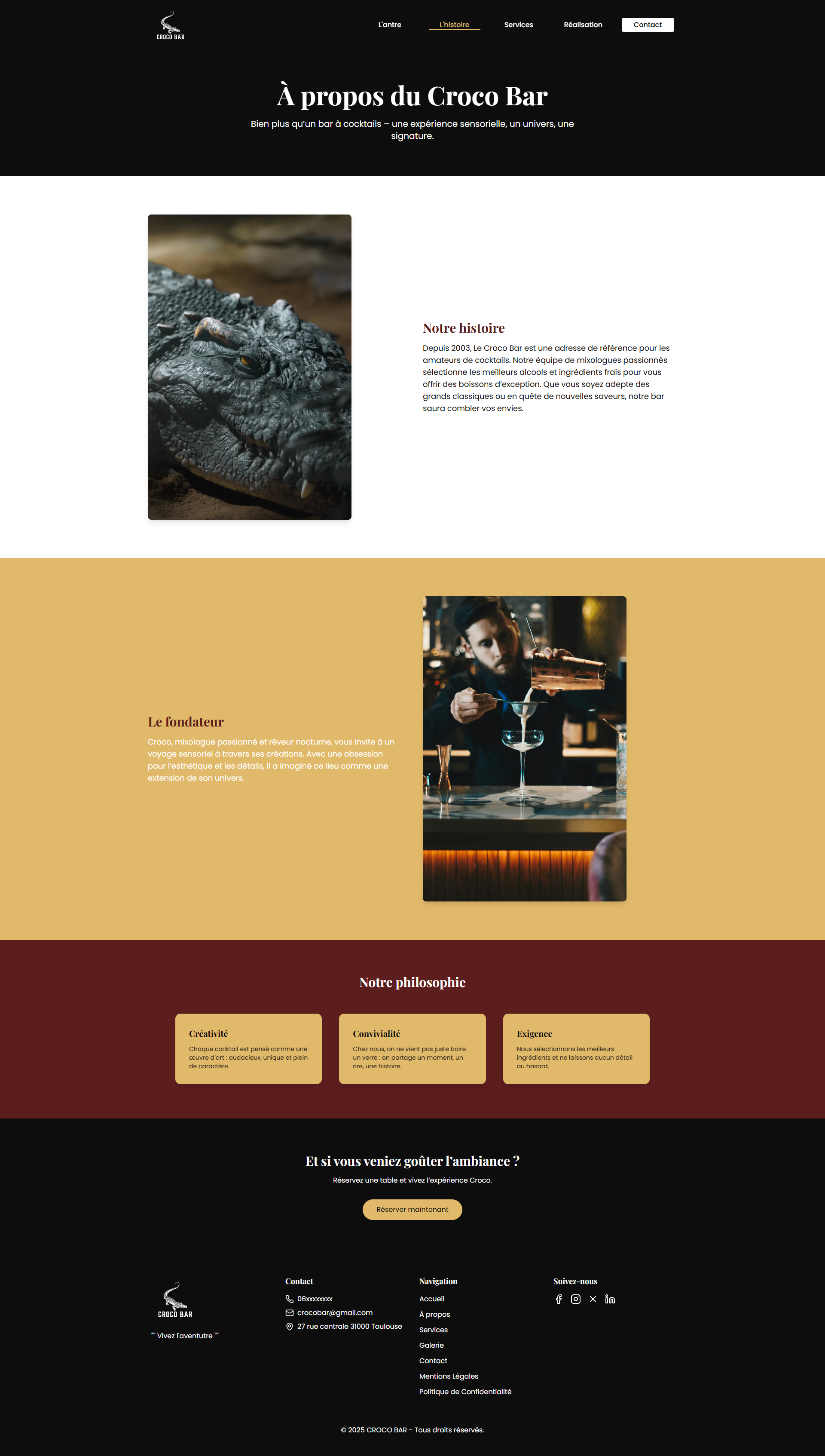 - 7 pages : Accueil, À propos, Services, Réalisations, Contact, Mentions légales, Politique de confidentialité